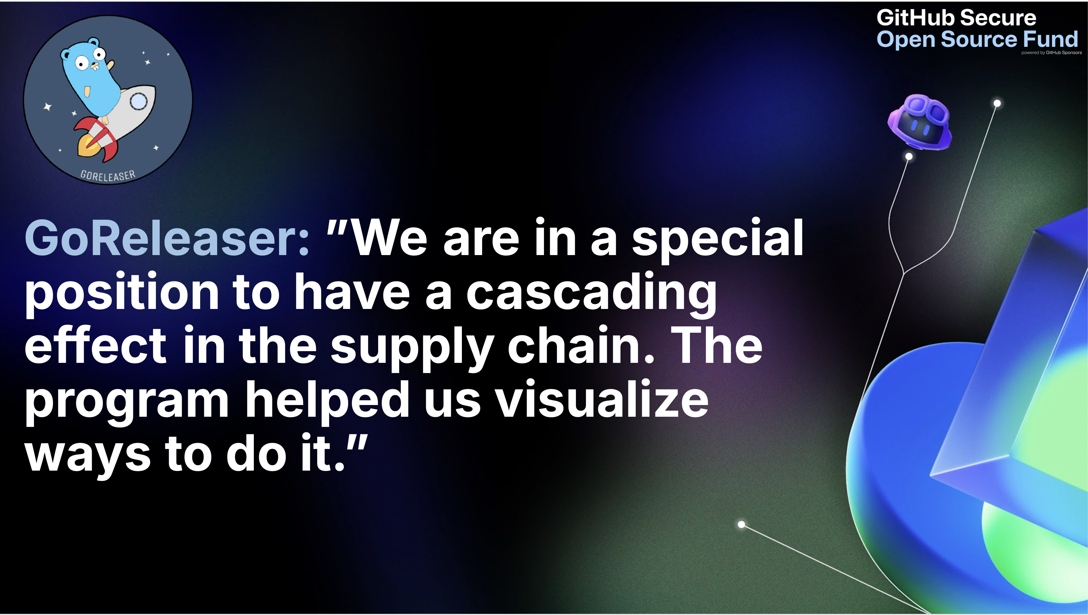 GoReleaser builds and ships release artifacts for thousands of projects, making it a high-value supply-chain target. That’s why we were thrilled to be selected for the third session of the GitHub Secure Open Source Fund.