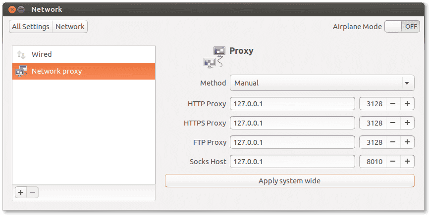 Then put you root password followed by the domain password. Copy the given hashes to the /etc/cntlm.conf and restart the service with /etc/cntlm restart, setup your proxy as 127.0.0.1:3128 (8010 for SOCKS) and you are ready to go (remember to apply system wide):