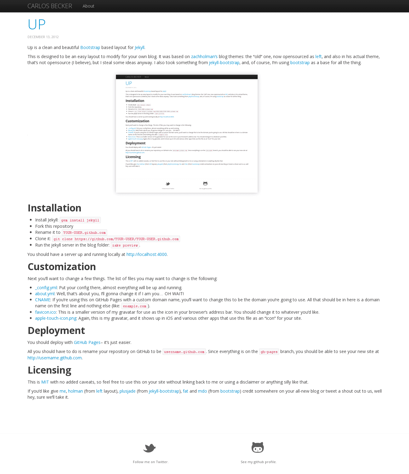 Up is a clean and beautiful Bootstrap based layout for Jekyll.